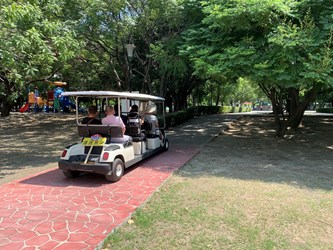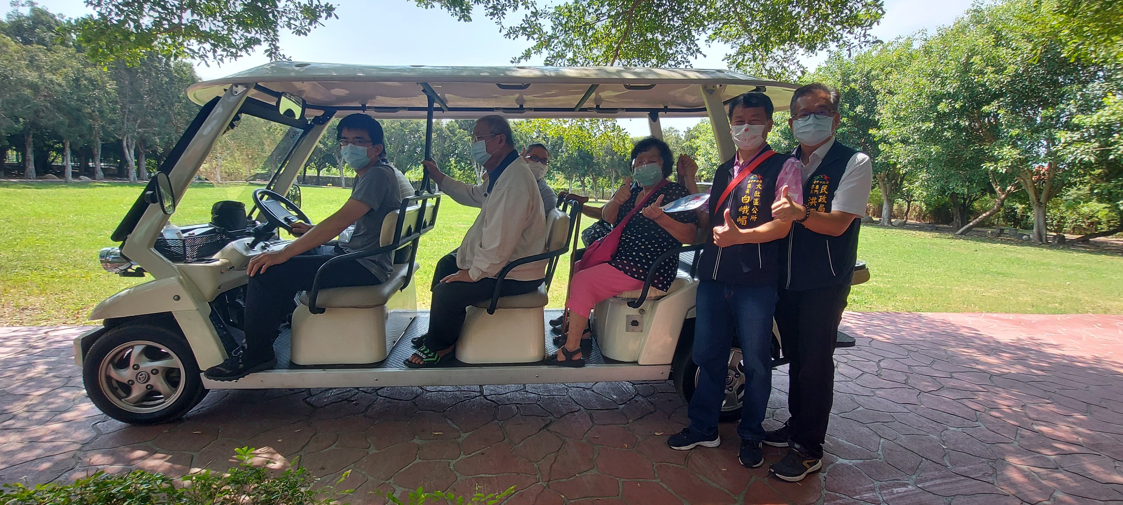 大肚區長白峨嵋指出,配合快打站撤離校園,大肚區快打站調整至大肚運動公園太極拳訓練場為民眾提供接種服務,由於快打站場所距離園區路口約200公尺,為減輕行動不便長者行動負擔,調用2部電動高爾夫球車接駁民眾至快打站,民眾搭乘高爾夫球車漫遊綠意盎然的公園內,間接舒緩民眾接種疫苗的緊張情緒,民眾紛紛感謝市府及公所的貼心,直呼打疫苗還能體驗「微旅遊」的渡假氛圍,相當有趣。