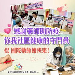 今(25)日是國際藥師節,台中市食品藥物安全處有感於藥師於疫情期間,全力協助市府執行各項防疫工作及實名制口罩販售,也大力宣導民眾佩戴口罩、勤洗手等個人防護措施衛教工作,食安處長傅瓊慧致上最高敬意,指出社區藥師是民眾健康的好厝邊,也是用藥和防疫守門員,感謝藥師們的努力付出,為市民健康把關不遺餘力。