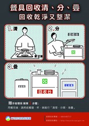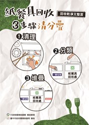 環保局提醒,民眾在店內用餐完畢後,記得先將食物殘渣等廚餘投入「廚餘回收桶」,再將紙杯、紙碗、紙盤、紙餐盒等紙餐具依序進行「清理、分類、堆疊」等3大步驟,最後投入「廢紙餐具回收設施」,落實分類回收。另外,廢紙餐具於表面塗上一層塑膠淋膜屬於複合材質,回收時應歸屬為「廢紙容器類」,請不要將「紙餐具」跟「一般紙類」混合回收或當垃圾丟棄。
