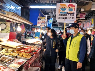 經發局提醒,疫情發展以來有賴於市場攤商及市民的配合,市場相關防疫措施才能推動落實,疫情警戒標準雖已調降至二級,市民進入市場仍應配合防疫措施,如實聯制、量測體溫、全程佩戴口罩並維持社交距離。(10/26*6)*經濟發展局