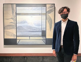 這屆評審委員召集人吳隆榮指出,今年徵件共有127件作品參賽,由9位藝術專業學者組成評審團,初審階段有49件作品脫穎而出,最後再經複審評選出第一、二、三名、優選9名及入選37名。獲頒首獎的李宏泰作品《坐看雲起#3》,運用黑色塊面與線條疊襯交錯,以日式拉門區隔出芭蕉葉門障後的空間,越過中景枯山水,再延展出遠方的冬雪盛景,蘊含著超越現實中的不完美、追尋樂活人生的鮮明意象。