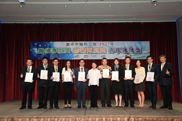 1112日為一年一度的醫師節,為感謝台中市醫療院所於疫情期間不辭辛勞、犧牲奉獻,台中市醫師公會及台中市大台中醫師公會今(21)日辦理醫療奉獻獎及醫療貢獻獎頒獎典禮,頒發今年度協助防疫工作、疫苗接種及社區快篩等衛生業務醫療院所及醫師感謝狀,市長盧秀燕到場感謝醫護人員,「有大家真好!」她表示,市府將與醫界攜手同心,維護市民安全。