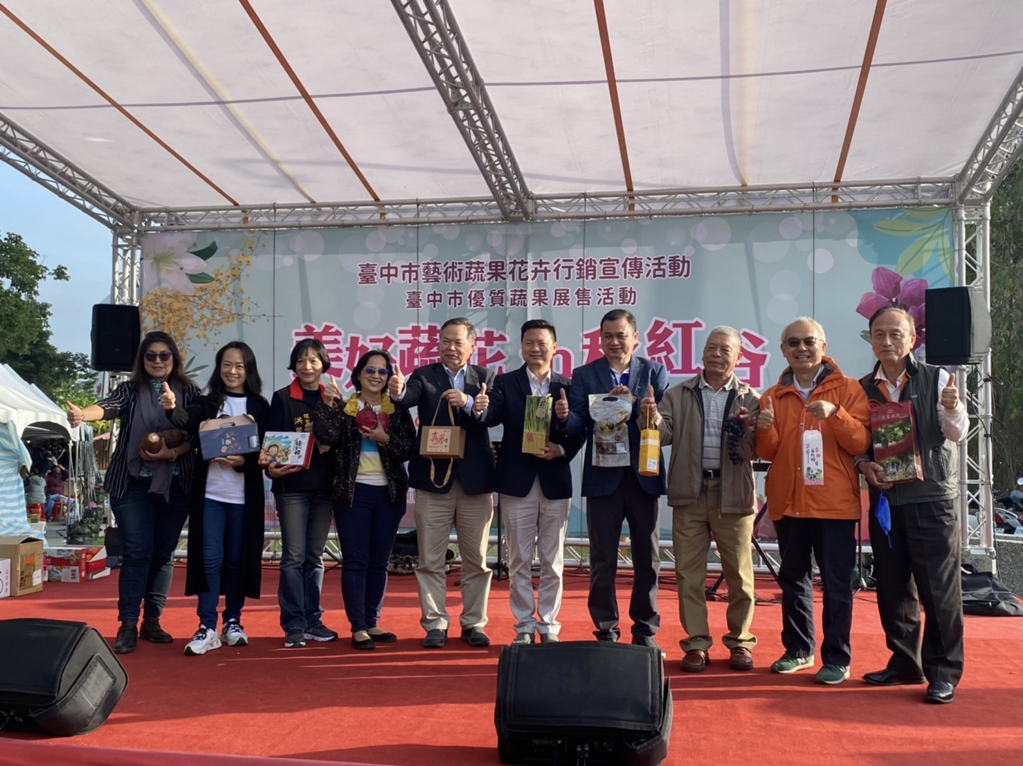 今日活動開幕式,市議員施志昌、農業局長蔡精強、農糧署作物組副組長黃瑞呈、經發局主任秘書倪世齡、新社區農會總幹事羅文正、台中市農會總幹事林育葦、台中市直轄市酒類商業同業公會理事長洪麗霜、魚可國際文創事業有限公司執行長文蓓蓓、中華民國展覽暨會議商業同業公會理事翁瑀等貴賓蒞臨。(12/18*17)*農業局