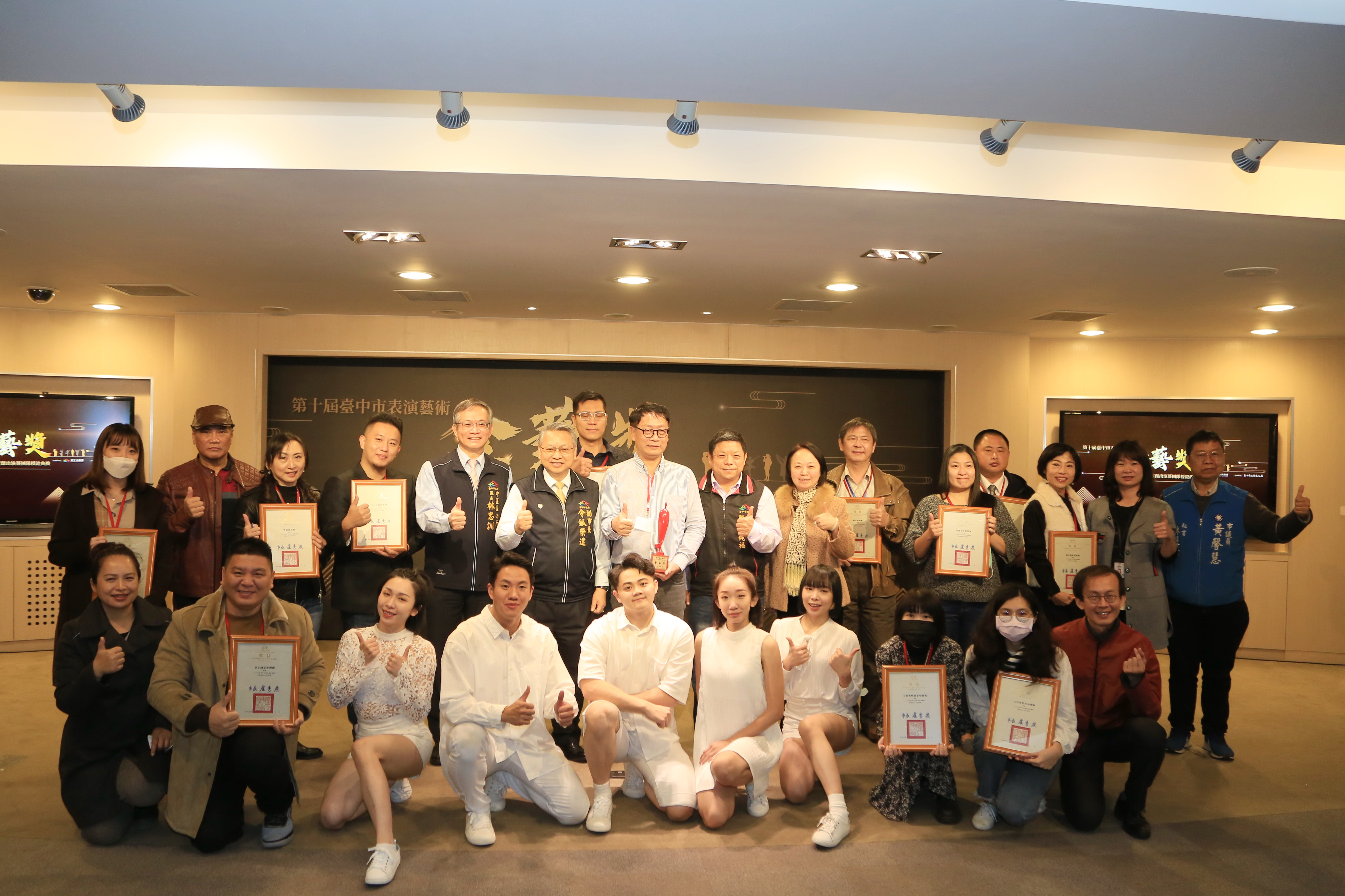 文化局說明,台中市立案演藝團體已逾700團,傑出演藝團隊與金藝獎,是許多團隊的目標。今年受到新冠疫情影響,台中市許多演藝團隊面臨活動取消或延期的壓力,卻依然持續努力創作累積藝術能量。今年的台中市傑出演藝團隊甄選在27隊激烈競爭下,最後由12個團隊脫穎而出,先前因疫情三級警戒影響延後頒贈獎狀,特別安排在金藝獎頒獎典禮中辦理授證儀式。