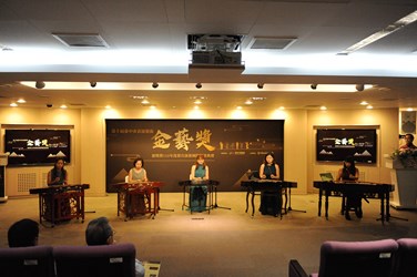 令狐副市長表示,金藝獎是為發掘及表彰致力於台中市表演藝術領域的保存、傳承、發展及創新,以及具重大貢獻的傑出表演藝術工作者,由表演藝術領域的專家學者擔任遴選委員,是台中市表演藝術界最高榮譽的獎項,自第1屆至第9屆已選出13組得獎者。今年共有來自戲劇、音樂、舞蹈和戲曲等表演藝術領域的個人和團隊共9組參與角逐,最終由台灣揚琴樂團榮獲「第十屆台中市表演藝術金藝獎」之殊榮。