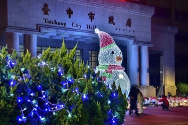 迎接耶誕佳節,打造台中市全市亮起來氛圍,市府水利局今年在豐原區陽明市政大樓周邊廣場點燈佈置,打造5公尺高「大雪人」主燈,北國雪景風情結合豐原舊地名葫蘆墩等意象,將成網美打卡亮點。市長盧秀燕今(23)晚將與各立法委員、台中市議員、豐原區里長及社區發展協會等單位共襄盛舉點燈活動,歡迎民眾參觀拍照,徜徉節慶熱鬧氣氛。
