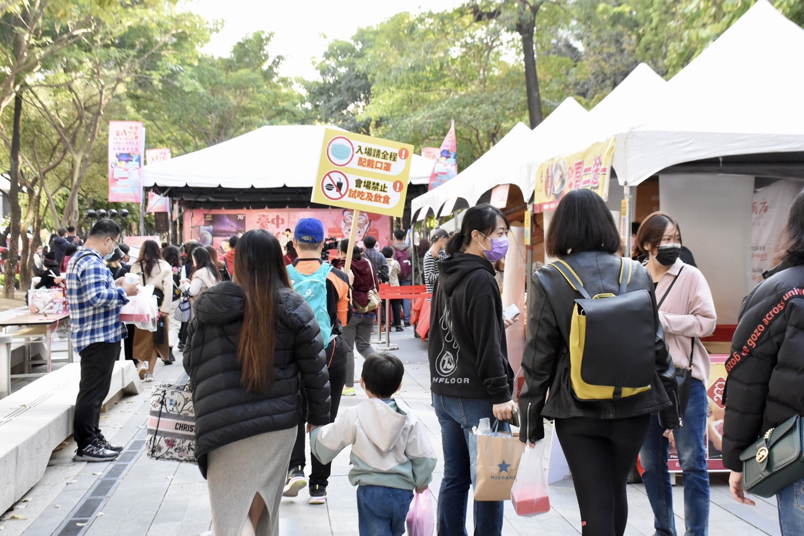 張局長也呼籲民眾配合「台中春節防疫專案」相關措施,所有工作人員與參加民眾,均採實名制入場,現場提供消毒酒精,工作人員、民眾全程戴口罩,禁止邊走邊吃,且不開放試吃,讓大家安心逛、開心買。