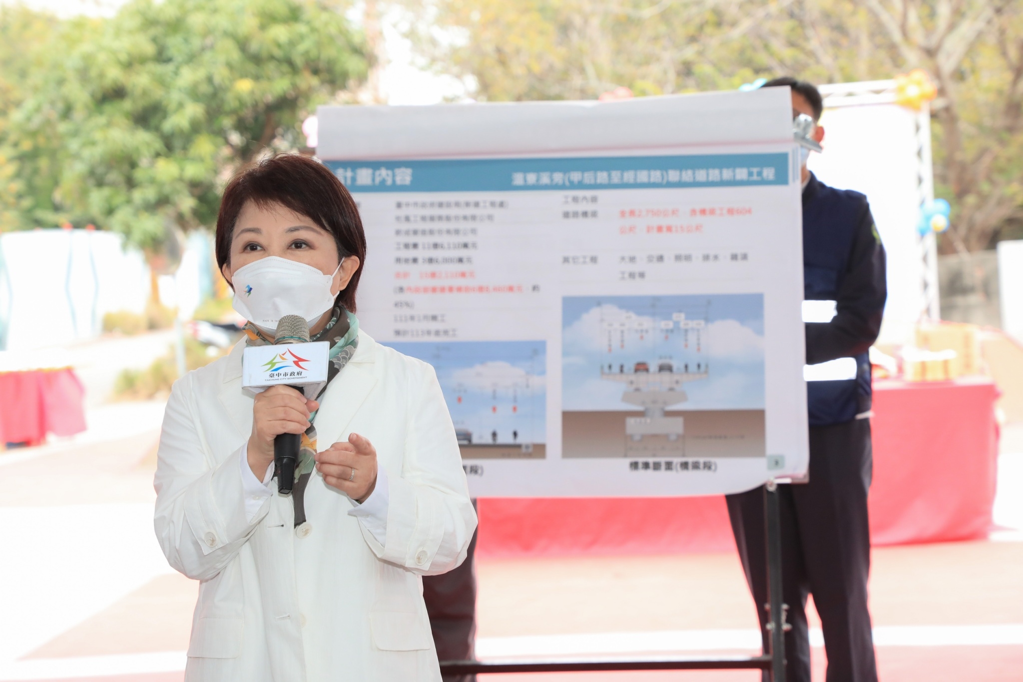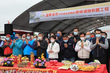 新年最好禮物!台中市政府建設局回應地方期待,積極打通瓶頸路段,全長2.75公里(含橋梁2座)、寬15公尺的「溫寮溪旁(甲后路至經國路)聯絡道路新闢工程」今(17)日開工,預計113年底完工,總工程斥資15億2,110萬元。市長盧秀燕表示,道路完工後,可紓解甲后路及甲東路車流、縮短約半小時進入大甲市區車程,也有助強化大甲、外埔地區的聯外交通。