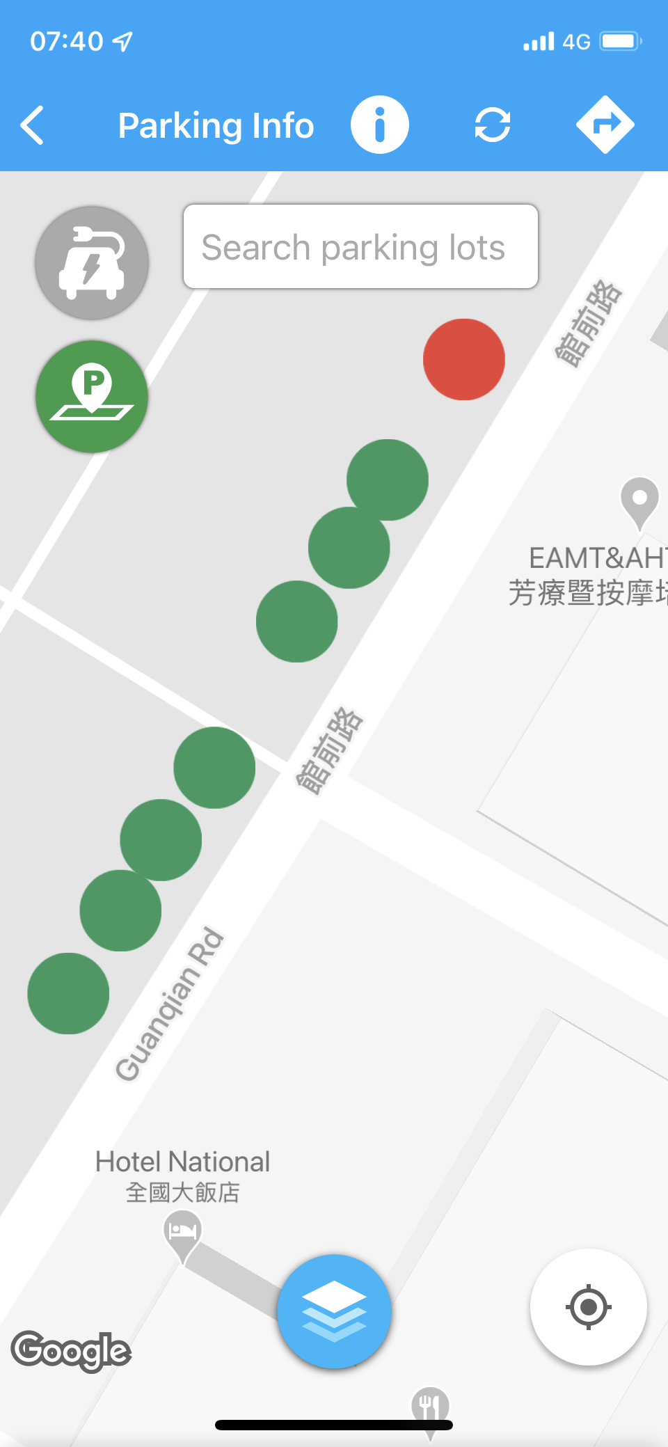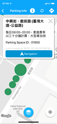 台中市政府交通局於路邊高停車率、高周轉率的累進、差別費率車格布建地磁設備,並將車格資訊整合至「臺中交通網APP」,透過APP可即時查詢路邊停車空位資訊,除以顏色顯示車格狀態,更加強路邊親子車格、身障車格、卸貨車格等特殊車格辨識,讓民眾直觀了解車格空位及特殊車格地點,還可導航至目標車格,有效減少民眾找車位時間。