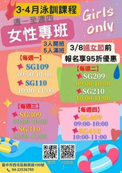 3月8日是國際婦女節,台中市政府運動局關心女性朋友忙碌之餘也鼓勵參與運動促進健康,各區國民運動中心今(8)日規劃多項女性專屬優惠活動,歡迎踴躍參與。運動局長李昱叡表示,為提升台中規律運動人口,各區國運中心依據不同運動需求,推動多元女性運動專案,促進全民運動風氣。