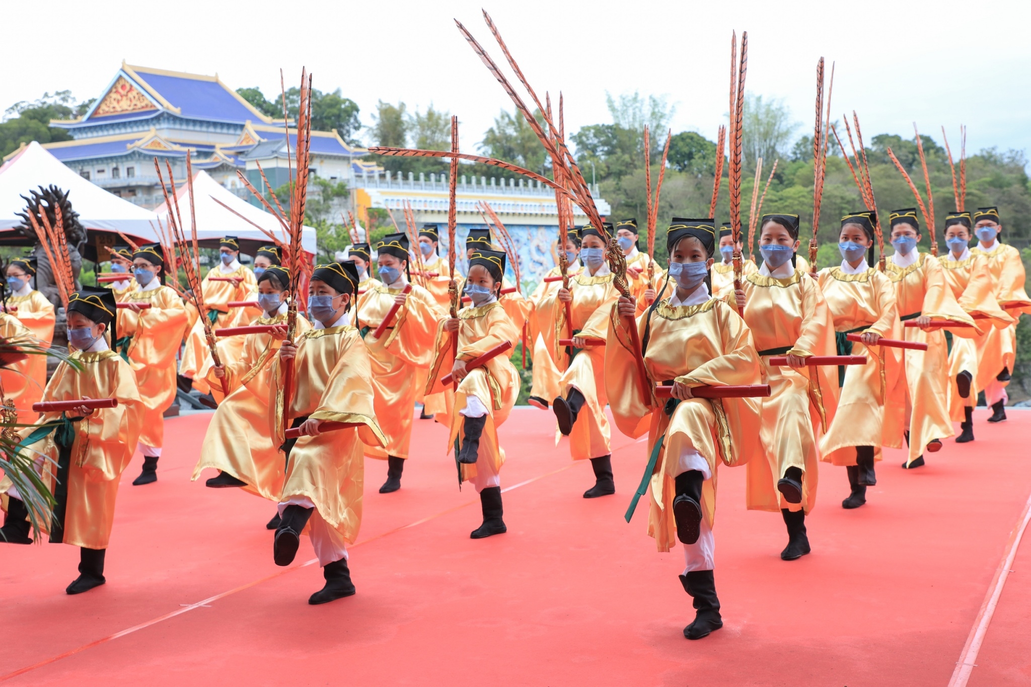民政局說明,今年的祭祖活動,除了往年莊嚴肅穆的祭拜儀軌外,更首次增加釋奠佾舞,此次六佾舞由台中市孔廟忠烈祠聯合管理所特別指導,並由道場青年學子參與六佾舞獻禮,以明朝《南雍志》之文舞圖譜排演,分東、西兩班,每一獻禮有三十二節,全程三獻禮共有九十六節,東、西班的動作是左右對稱,但不盡相同,呈現恭和謙讓之意。
