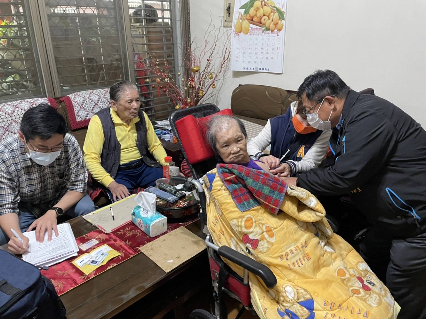 吳局長指出,目前疫苗供應充足,到宅接種長者家中如有尚未施打疫苗的18歲以上家屬且已符合疫苗第一至三劑接種資格者,經特約診所醫療團隊評估適合接種者,同樣可享有市府提供的在宅接種服務,歡迎民眾保握機會踴躍施打,保障自身健康。此外,75歲以上長者如符合資格者近日未接獲里鄰系統的調查電話,也可自行向當地里長或里幹事登記,區公所將儘速聯繫安排,全力守護市民健康安全。