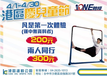 兒童節連假將至,台中市長盧秀燕積極推動兒童運動發展,設置全國首創國民暨兒童運動中心,讓全家大小都能一起健康動起來。為提升城市運動風氣,響應兒童節連假,各國民運動中心及港區運動公園規劃多項兒童與親子專屬活動及課程,並提供多項優惠方案,促進全民運動風氣,歡迎民眾踴躍參加。