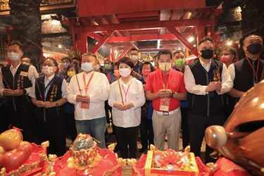 台灣宗教年度盛事之一「大甲媽祖繞境進香」今(8)晚11時將正式啟程,台中市長盧秀燕關心繞境防疫安全,今早特前往大甲火車站及大甲鎮瀾宮視察防疫情形,她到廟前疫苗3OK識別證兌換站時也出示小黃卡接受驗證,提醒民眾務必接種完三劑疫苗才可參與繞境,並遵守戴口罩、勤洗手等個人防疫措施,暫停鑽轎腳、搶轎等儀式,呼籲市民持續落實防疫,保護自身與他人健康安全。