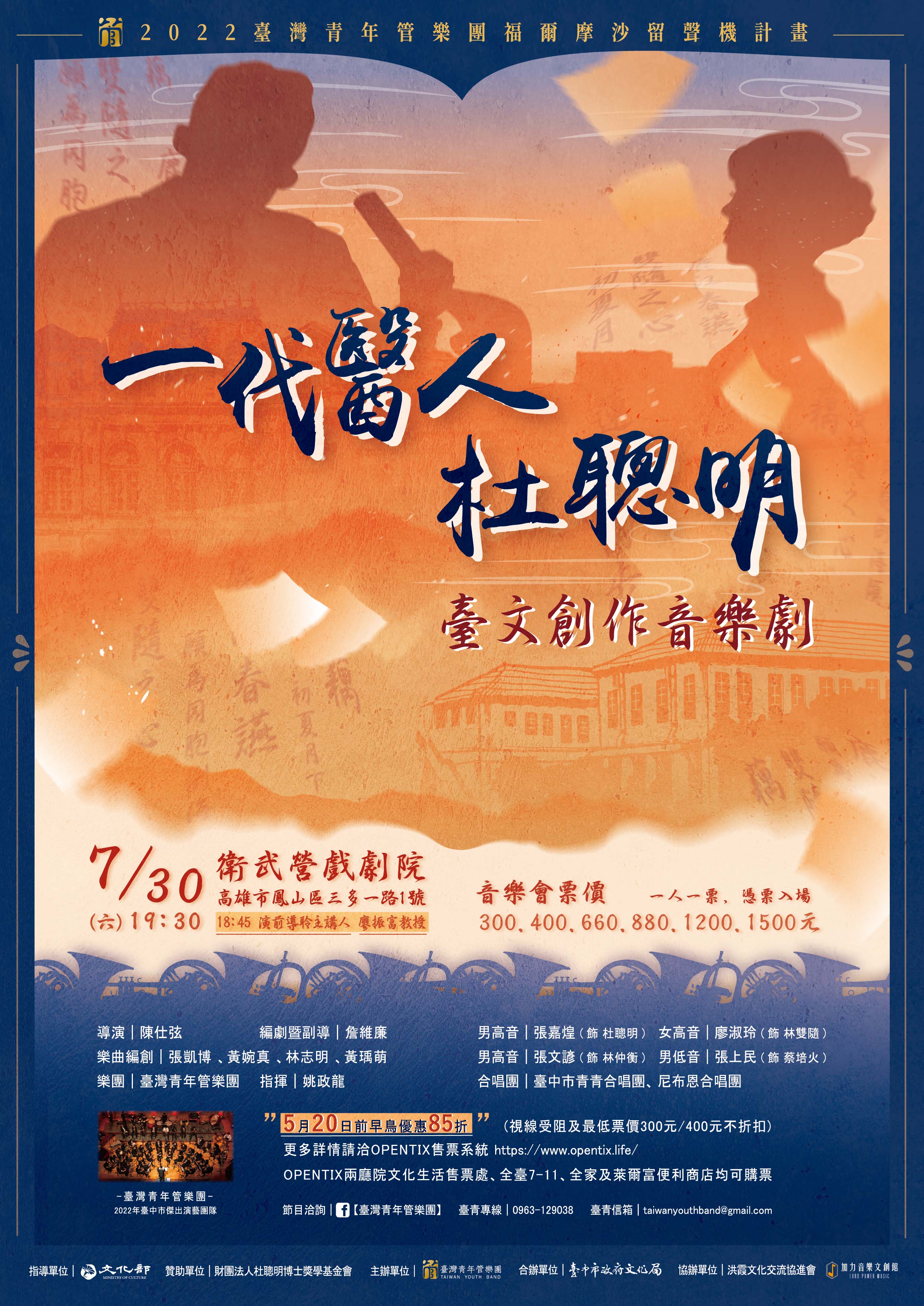 台中市傑出演藝團隊台灣青年管樂團表示,2020年申請文化局紓困計畫,以開台第一位醫學博士杜聰明為主題進行創作,催生今年台文創作音樂劇《一代醫人杜聰明》,紓困計畫讓團隊的創作延續,也促成今年7月30日在高雄衛武營演出台中在地故事。