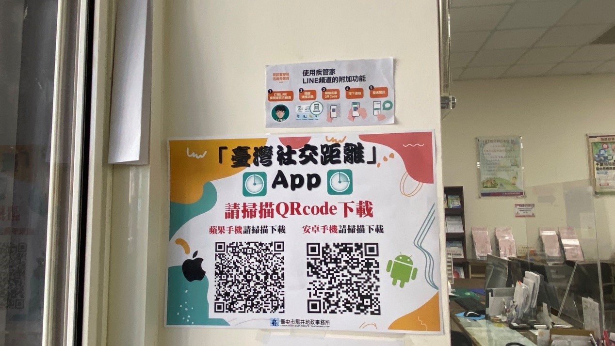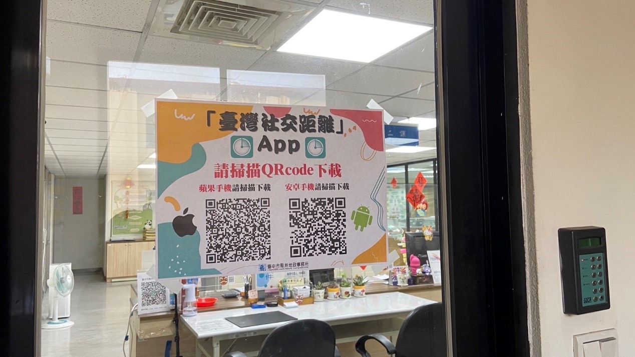 台中市龍井地政事務所配合中央流行疫情指揮中心提倡「台灣社交距離APP」政策,民眾進入該地所洽公時,下載並出示台灣社交距離APP畫面得免用其他實聯制措施,提供更便利的自主防疫方式,歡迎市民踴躍下載使用APP