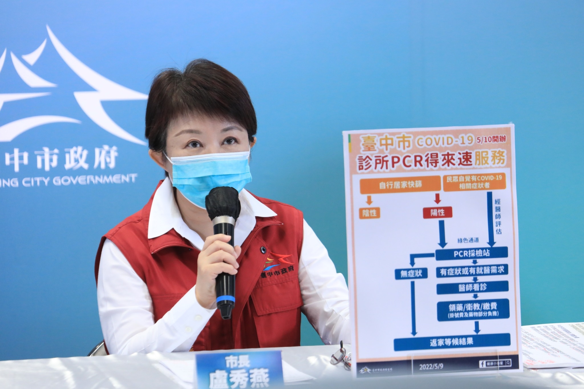 全國今(9)日本土確診新增4萬263例,台中市本土個案新增2,099例,其中535位確診個案為接觸者發病,包括校園群聚73例、職場群聚96例、家庭朋友群聚366例,其餘持續調查中。市長盧秀燕今日於防疫記者會宣布,為紓解醫院急診室醫療負擔,台中市與境內診所合作,明日起實施「診所PCR得來速」機制,民眾若居家快篩陽或出現新冠肺炎相關症狀,經診所醫師評估後,可在台中市7家診所PCR,有症狀可由醫師看診後領藥、衛教,節省就醫時間。