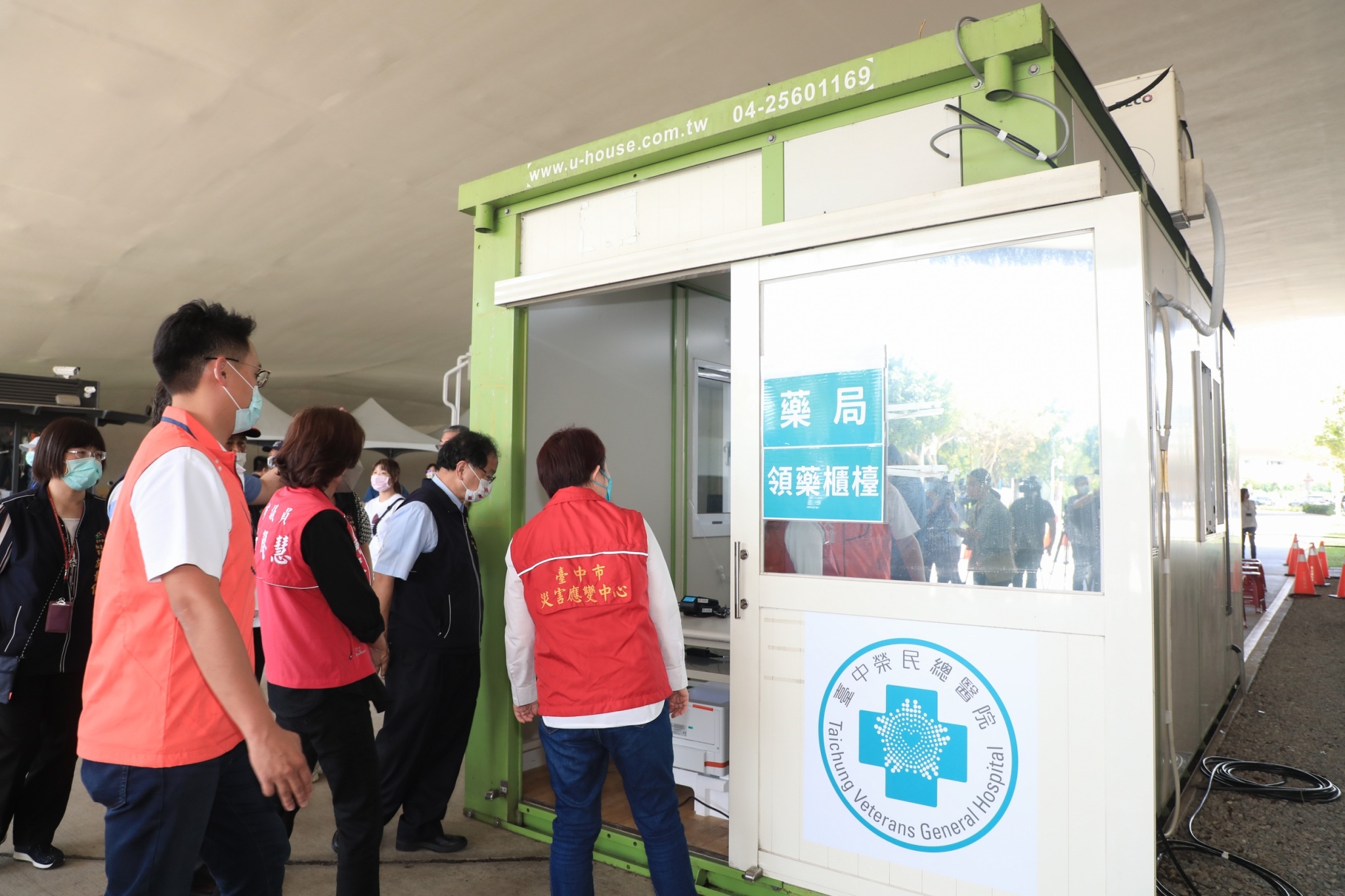 盧市長指出,國內確診數越來越多,民眾的篩檢需求也大增,為快速協助因疫情就醫的民眾,避免在醫院大排長龍,因此,市府與台中榮民總醫院、童綜合醫院共同合作。明日起於中央公園開始實施大型「PCR給藥得來速」機制。梧棲童綜合醫院大型篩檢站則已上路,服務居家快篩陽性或有症狀患者,篩檢站也設有親子得來速通道,避免家人帶著孩童重覆排隊。