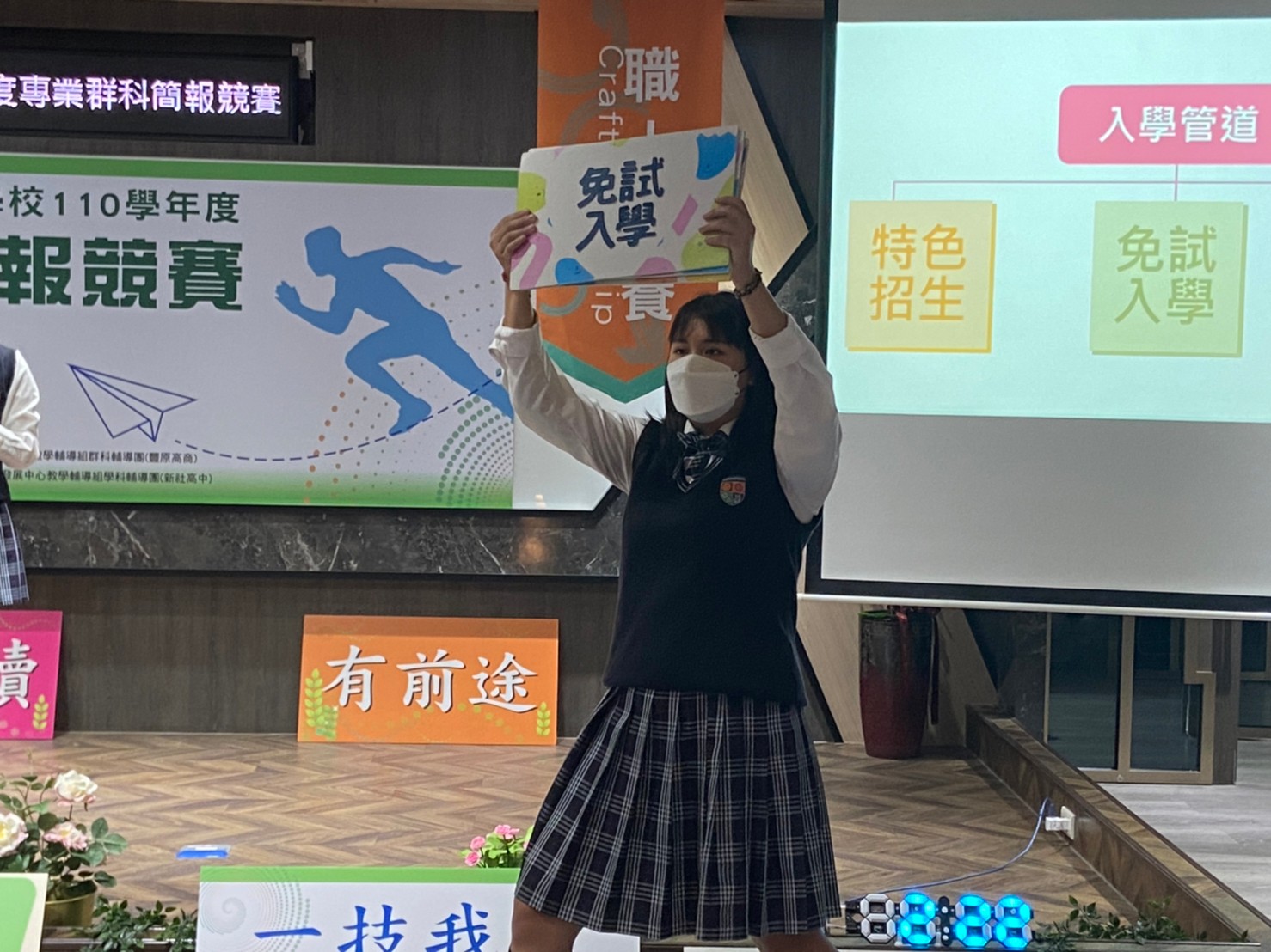 台中市政府教育局持續舉辦技術型高中師生「專業群科簡報競賽」,今年主題是「以技之才,翻轉未來」,總計40隊報名,經過教育局聘請業界專家透過系列訓練及競爭激烈的初賽後,最後錄取16隊進入決賽,以實體簡報決勝獎項,今(19)日在豐原高商展開決賽,由豐原高商「技優領航.精湛非凡」奪冠,明道高中「以設誘人,神乎其技」及僑泰高中「資料搜尋數據分析,處變不驚洞察商機」分別拿下二、三名,台中高工「技開得勝 藝職千金-讓我們技能與社會對話」、大明高中「只怕想不到 沒有做不到」及東勢高工「家具工藝,創新設計」則獲得優選。