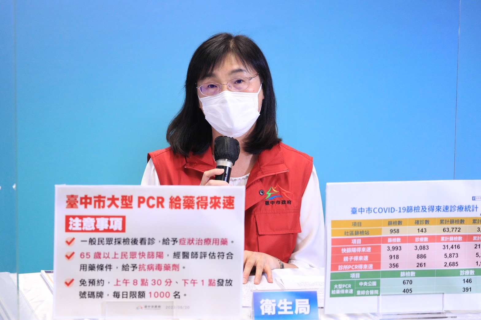 全國今(20)日本土確診新增8萬5720例,台中市本土個案新增7144例。市長盧秀燕今日於防疫記者會表示,為維繫醫療量能,讓快篩陽性的民眾及早獲妥善處置,市府與台中榮民總醫院合作設置的中央公園「大型PCR給藥得來速」今日上路,上午已有許多民眾領號碼牌,並在陰涼處依序排隊;另在童綜合停車場的「大型PCR給藥得來速」運作也非常順暢。今日上午9時至中午止,中央公園站共篩檢670人、診療146人;童綜合站共篩檢405人、診療391人。