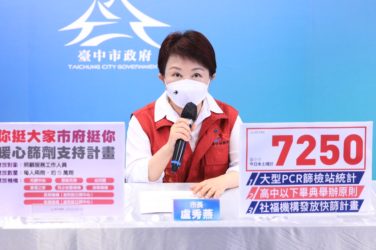 另有 鑑於中央公園、童綜合醫院兩處大型篩檢站越來越多人使用,盧市長說,中央公園的部分昨日一共篩檢996人,提供診療服務558人;梧棲童綜合醫院昨日篩檢746人,提供診療服務708人。市府也會緊盯疫情趨勢,滾動式檢討設立其它的大型篩檢站,增加整體篩檢與給藥量能,服務市民。