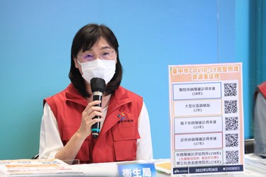 衛生局副局長邱惠慈表示,快篩陽經診斷即確診,台中市各項篩檢站已轉型「快篩陽確診」得來速,但仍建議確診民眾採家用快篩陽性遠距經醫師評估確診即可。經家用快篩陽性後,於檢測卡匣上寫上日期與姓名連同健保卡,再拍照透過遠距視訊診療的方式上傳讓醫師做評估,台中現有250家評估院所。
