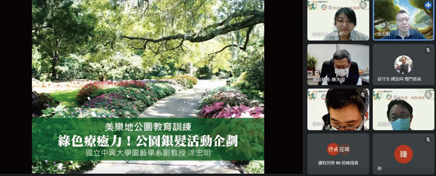 陳局長表示,原課程安排靜態講座與動態操作體驗課程,但隨著疫情升溫,為防疫安全改採線上辦理。此次課程共有三個議題,分別邀請國立中興大學園藝學系副教授凃宏明、屏東科技大學景觀暨旅遊管理研究所助理教授廖曼利,及屏東科技大學農園生產系助理教授翁珮怡,由淺入深講述公園環境的療癒知識,在台灣邁入超高齡化社會前,規劃友善高齡族群的公園環境,為生活繁忙的人們,提供療癒舒適、有助身心健康的環境,進一步認識公園綠地在都市的重要性。