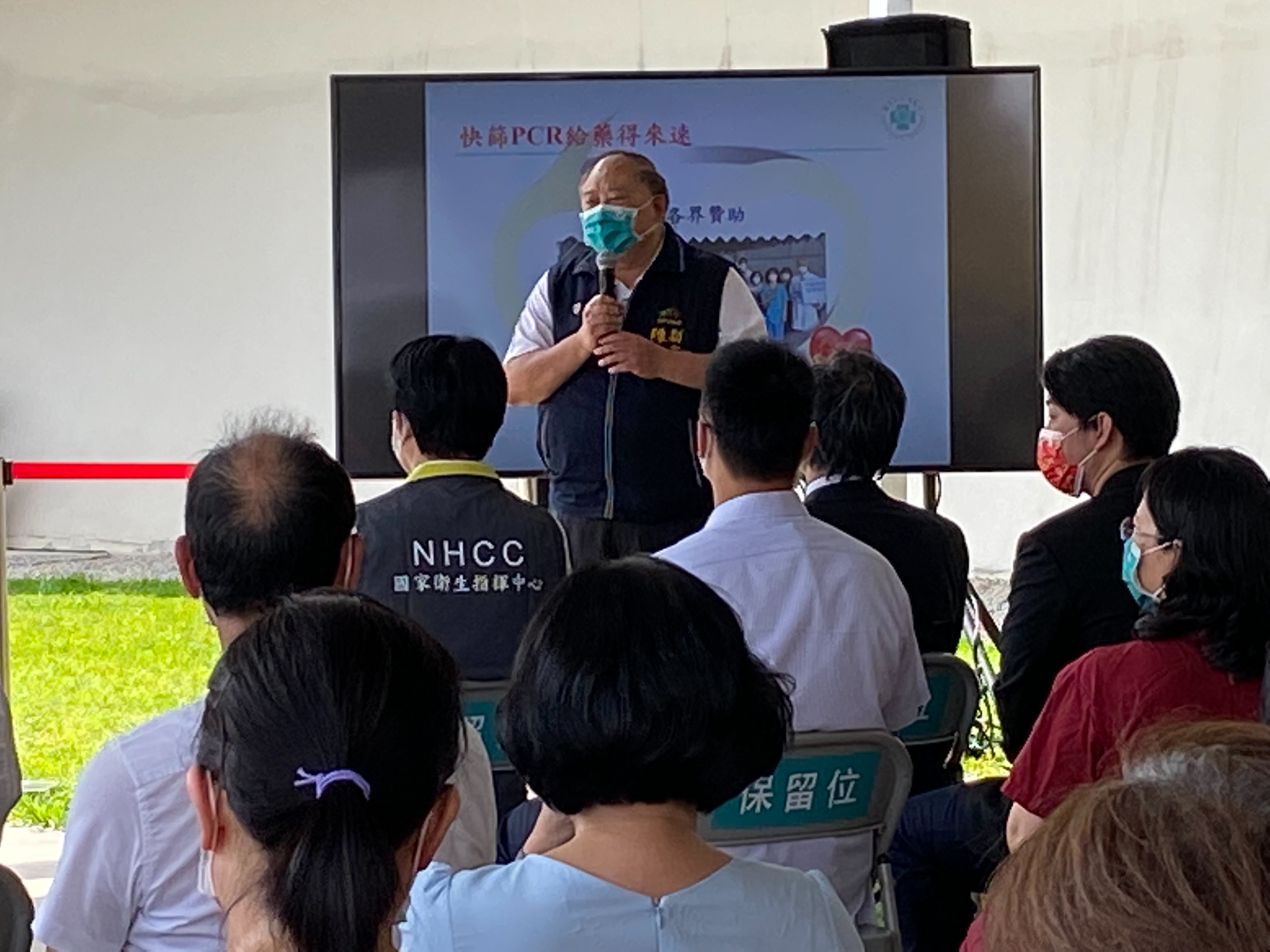 陳副市長也代表盧市長感謝陳院長率領的台中榮總醫護人員與主管,每日支援30至40名人員至中央公園站提供採檢、看診、領藥服務,市府相關局處每日也安排支援同仁協助現場引導與分流人潮。