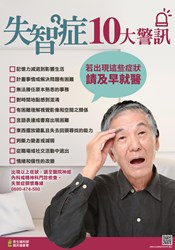 衛生局指出,失智症並非正常老化現象,若民眾發現家人出現失智症十大警訊症狀,應盡快就醫接受檢查及評估確診。舉例來說,今年90歲的翟爺爺某日外出時迷路,經由熟識店家聯絡家人才得以返家,日後家人發現爺爺在廚房煮飯常忘記關爐火、外出購物返家時錢不翼而飛、心情也常常起伏不定,女兒因此辭職照顧兩老生活安全。經醫生確診為失智症後,翟爺爺被轉介至失智據點接受認知促進及緩和失智課程,記憶退化趨緩許多,家屬壓力也得到緩解。