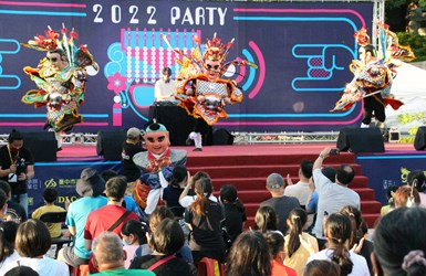 2022台中媽祖國際觀光文化節「迎媽祖HOT陣頭—陣頭狂歡PARTY」昨(29)日下午在港區藝術中心戶外廣場開演,陣容集結九天民俗技藝團、采風樂坊、宋坤傳藝及台中木偶劇團4大演藝團體,帶來融合東西方藝術的跨界演出,在落實防疫規範之下,打造狂歡派對的熱鬧氣氛及全新藝術饗宴。