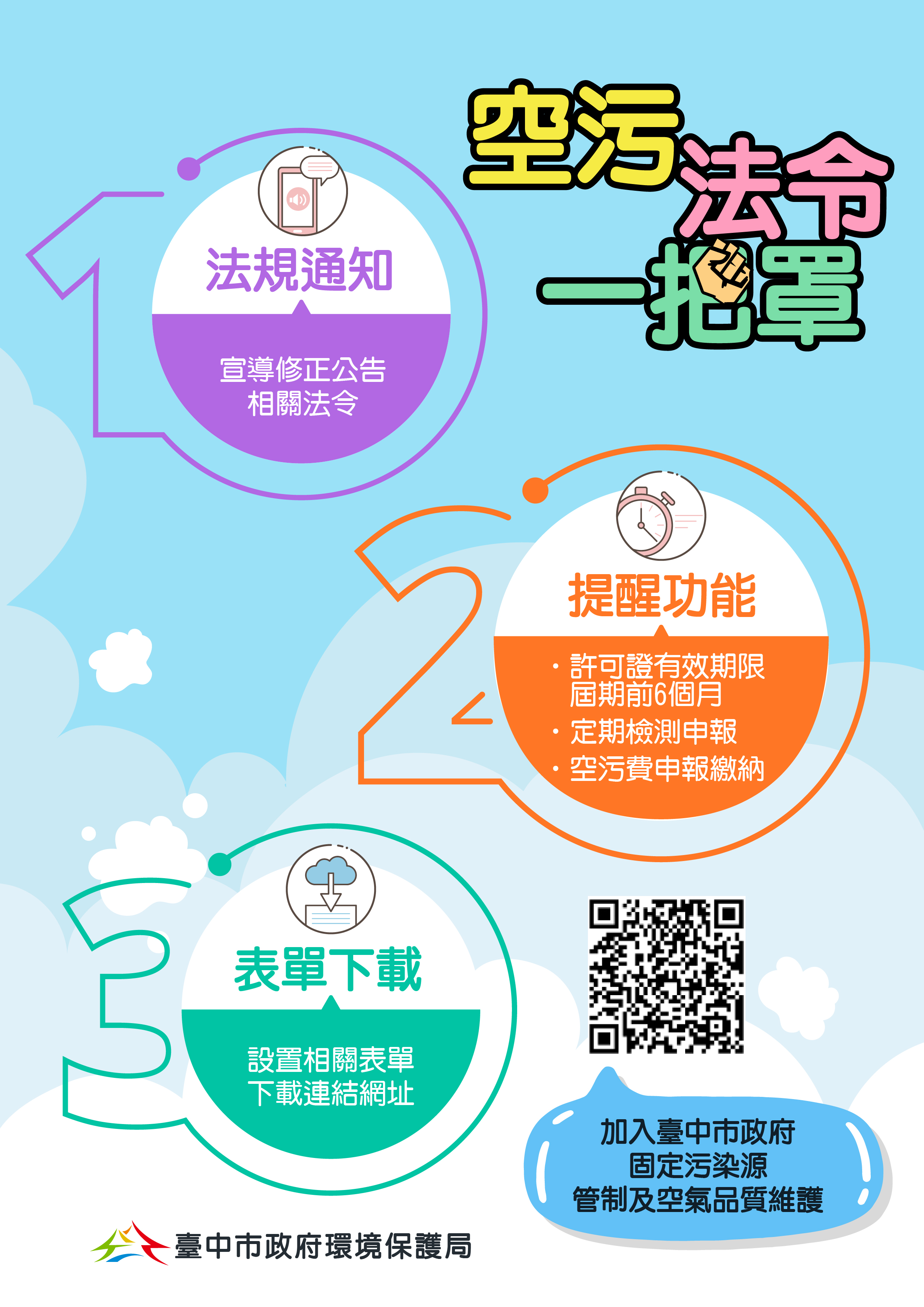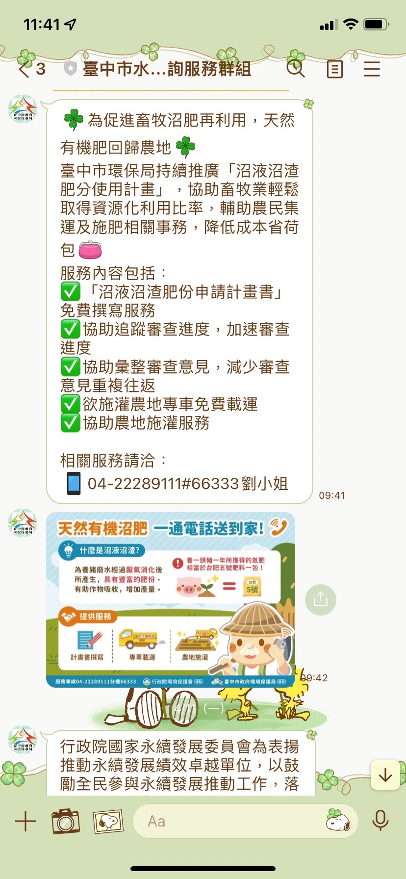 環保局說明,「台中市水污法許可諮詢服務群組」(https://lin.ee/jVx8t2Q)、「台中市政府固定污染源管制及空氣品質維護」(https://lin.ee/ejvXZWy)廣獲民眾好評,鼓勵民眾加入;環保局也邀請大家前往臉書「台中好環保」按讚(https://is.gd/Uj7hVQ),即時掌握最新環保訊息。(6/5*17)*環保局