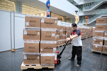 台中市疫情處於高原期,台中市長盧秀燕推出「溫暖助防疫」計畫,贈送快篩試劑給高風險、接觸群眾多等的第一線人員,每人一份2劑,並貼上帶有市府關懷的貼紙,證明試劑並非來路不明,讓收到的市民安心使用。為讓發放對象儘早拿到快篩試劑,市府集結數十名人力合力分裝試劑,今(10)日新聞局長鄭照新及秘書處副處長李政峯視察分裝作業,為市府同仁及熱心協助的志工夥伴打氣,感謝他們為防疫盡一份心力。