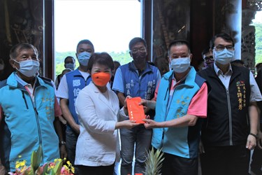 盧市長表示,聖和宮深耕地方多年,長期保佑地方平安,今日掛匾除對宮廟表示尊敬,也祈禱天上聖母庇佑每個家庭平安順利,也盼聖和宮主委陸東明帶領所有幹部秉持天上聖母慈悲為懷、救世濟民的精神,繼續為地方服務;她並提到,目前中南部疫情仍處高原期,提醒市民持續落實防疫別輕忽。