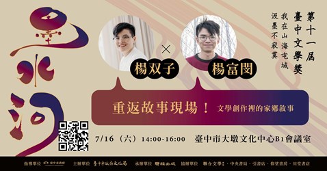 此外,第二場推廣講座訂於716日下午2時,邀請曾獲得台中文學獎的作家楊双子,以及擅長書寫家鄉與昔日舊事的作家楊富閔,以「重返故事現場!文學創作裡的家鄉敘事」為主題,和民眾分享文學創作裡的家鄉味,地點在大墩文化中心B1會議室,同樣也已開放網路報名( https://reurl.cc/A7a5W8 ),喜愛文學的朋友千萬不要錯過!