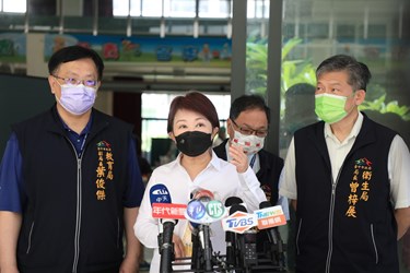 「防疫不休息!」盧市長說,6至11歲學童疫苗第二劑接種調整為兩劑間隔4到8週,台中之前施打莫德納疫苗的小朋友已可接種第二劑,市府與學校合作利用週末家長比較有時間的時候,在全市開設26個兒童疫苗快打站,現場有冷氣、播放卡通及工作人員提供服務。
