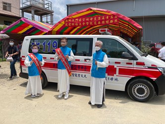 曾局長表示,政府資源有限,民力無窮,尤其目前疫情當前,更需要救護車執行緊急救護勤務,非常感謝烏日先天豐龍聖道堂對消防工作的支持與肯定,希望藉此拋磚引玉,將社會資源挹注於消防救災、救護工作上,所捐贈的救護車,未來將妥適運用於救護勤務,提高救護效能,提供市民更優質、安全的生活環境。