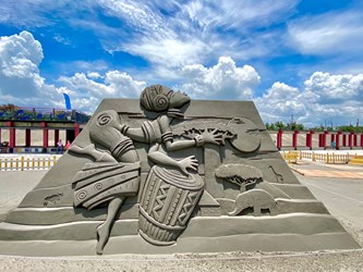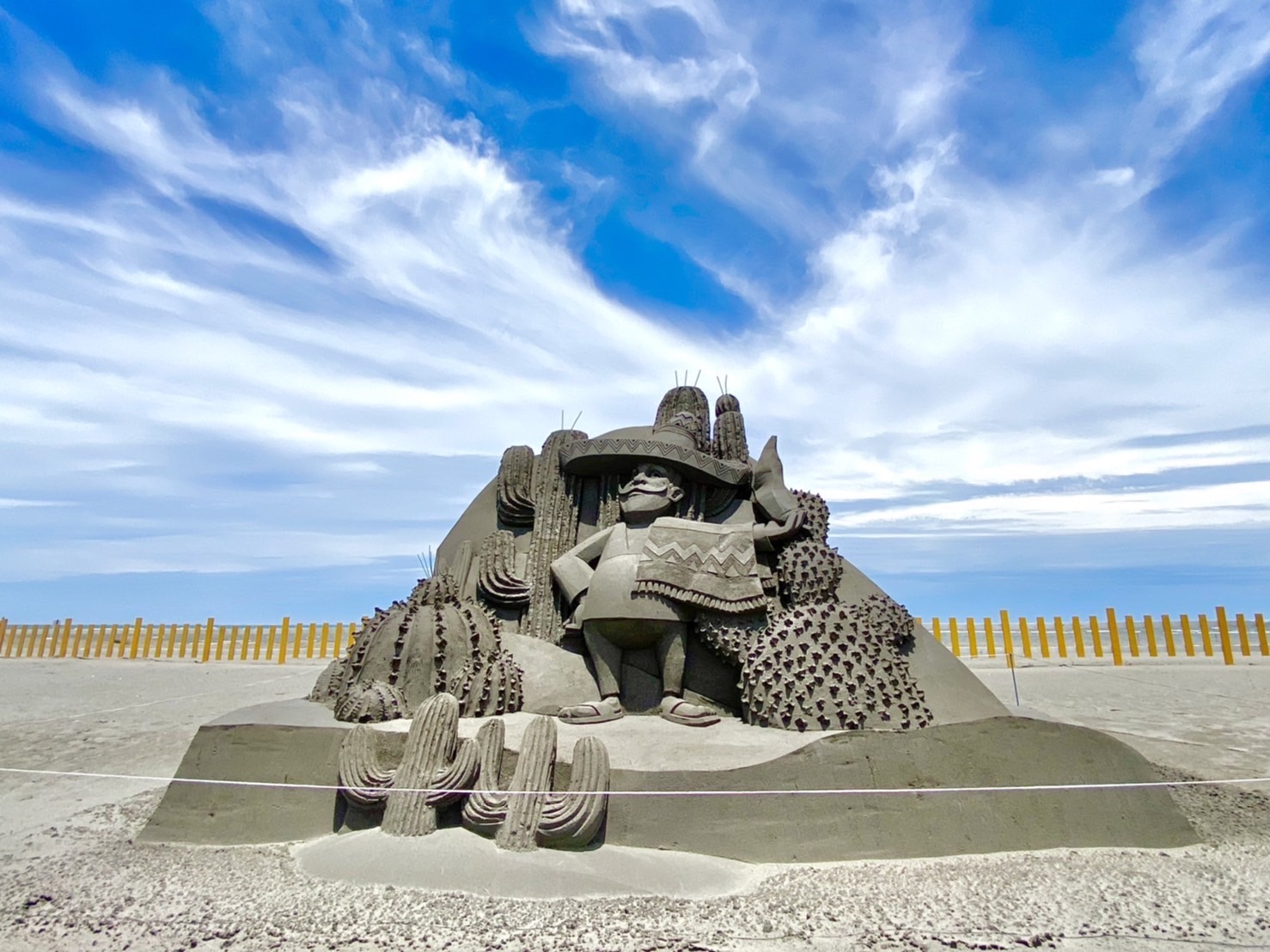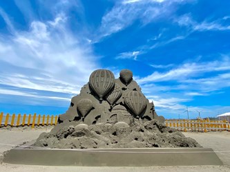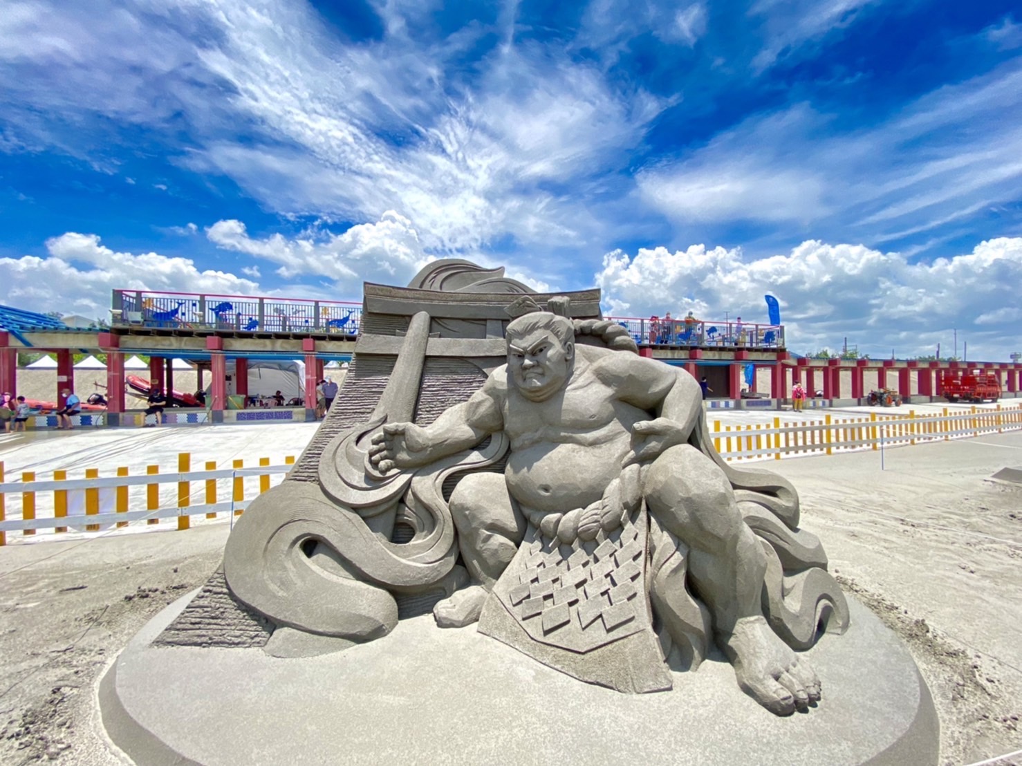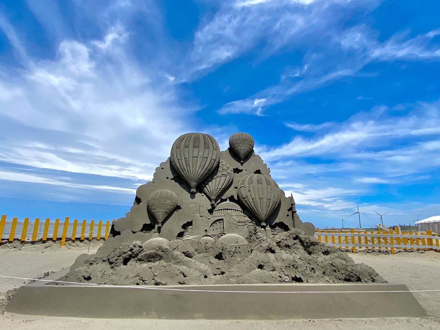 市府觀旅局表示,為滿足民眾因疫情無法出國旅遊的心情,今年以「異國風情」為沙雕主題,精心打造11座異國風情主題創意沙雕,將世界知名地標、異國特色風情搬到台中大安濱海樂園,享受偽出國的樂趣,更可到沙灘上踩沙踏浪,站上觀景平台俯瞰沙雕,將無敵美景盡收眼底,感受台中大安夏日風情。