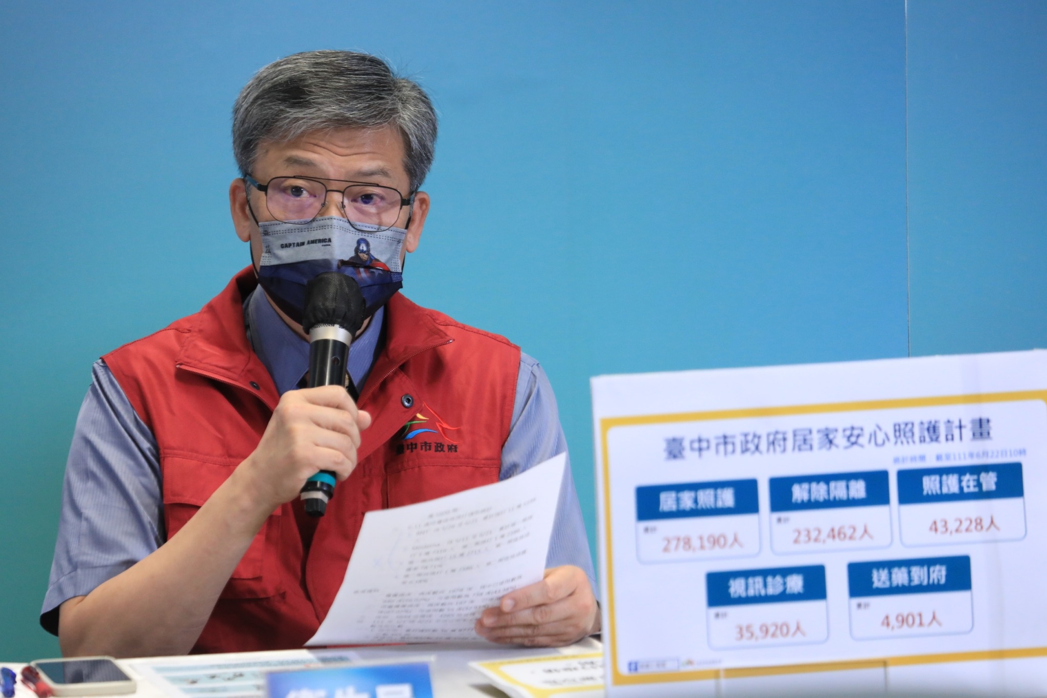 盧市長提醒,之前有孩子出現MIS-C症狀,國內近日也出現兩起MIS-A(成人多系統炎性症候群)疑似個案,主要臨床標準包括嚴重心臟疾病、皮疹、非化膿性結膜炎,跟長新冠症狀不太一樣,已康復的市民也要隨時注意身體狀況。衛生局長曾梓展表示,今天台中新增11例死亡案例,年齡介於63至94歲,均有慢性病或癌症病史,其中3例沒有接種疫苗,死亡原因以呼吸衰竭為主。(6/22*13)*衛生局