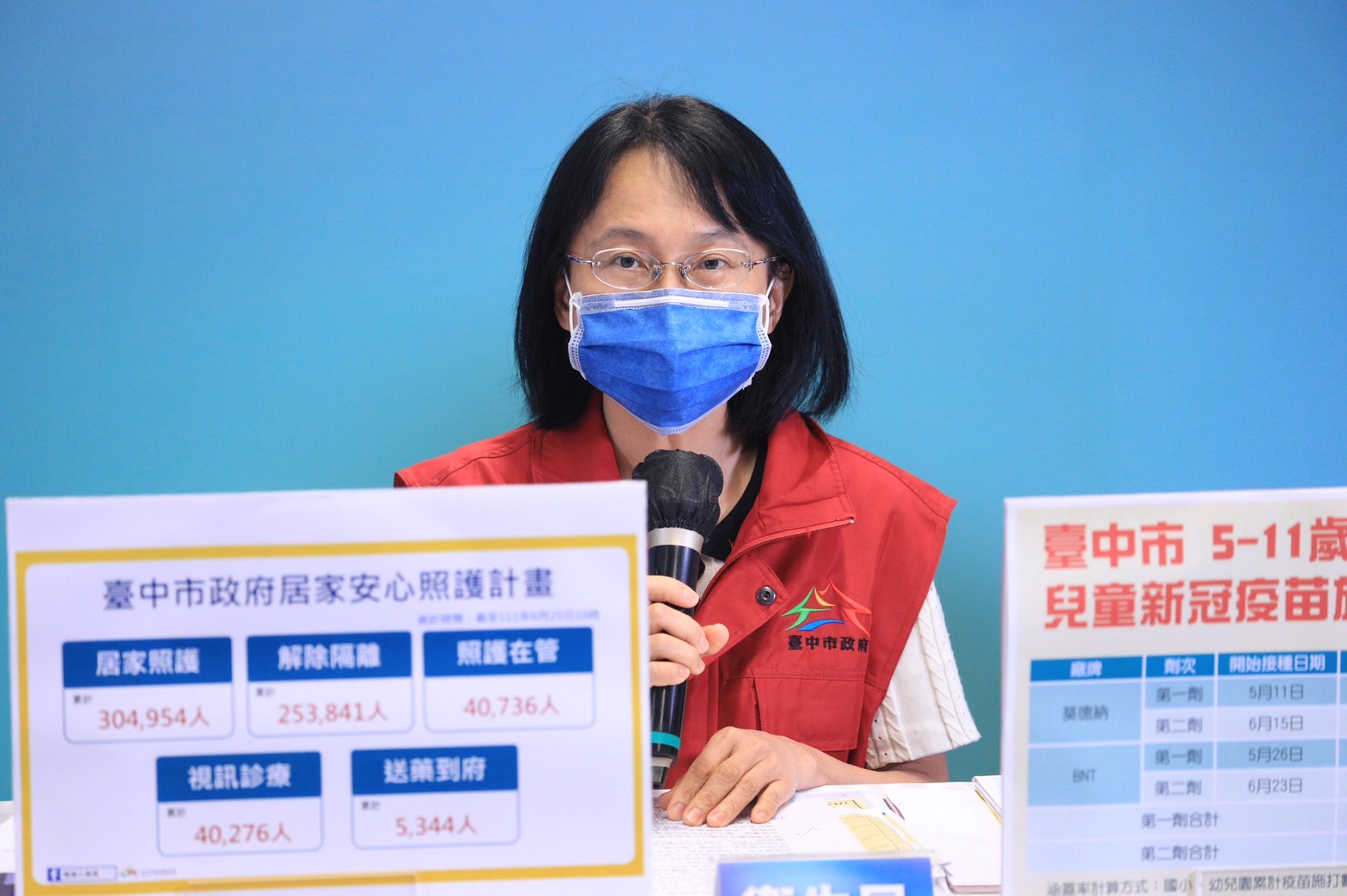 全國今(25)日新增4萬0293例本土個案,台中市新增6,075例本土個案,其中5,772例為快篩陽確診,占95.01%。副市長令狐榮達今日於疫情線上記者會表示,依據中央統計至6月23日的接種資料顯示,台中市5-11歲兒童第2劑接種率為7%,接種率六都第一,市府也於今日在全市12個學校,開設假日校園兒童BNT疫苗快打站,預計將近5千名5-11歲兒童將接種疫苗。