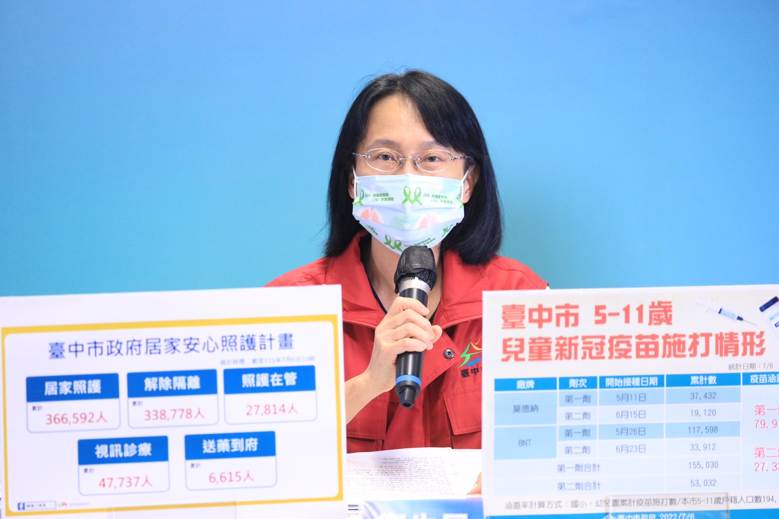 令狐副市長說明,兒童疫苗統計至昨日為止,5至11歲兒童疫苗第一劑共施打15萬5,030人,第一劑疫苗涵蓋率79.91%、第二劑共施打5萬3,032人,第二劑疫苗涵蓋率27.33%。在第二劑兒童BNT部分,台中市採取醫療院所、校園集中接種、校園快打站的三管齊下,截至今天早上8時為止,醫療院所總共施打1萬2,183人,校園假日快打站4,475人、校園集中接種1萬7,254人,教育局預估,校園集中接種預計接種率在八成左右,打氣非常踴躍,學童如因故無法參加校園集中接種也不用擔心,家長可帶孩子到各合約醫療院所接種。