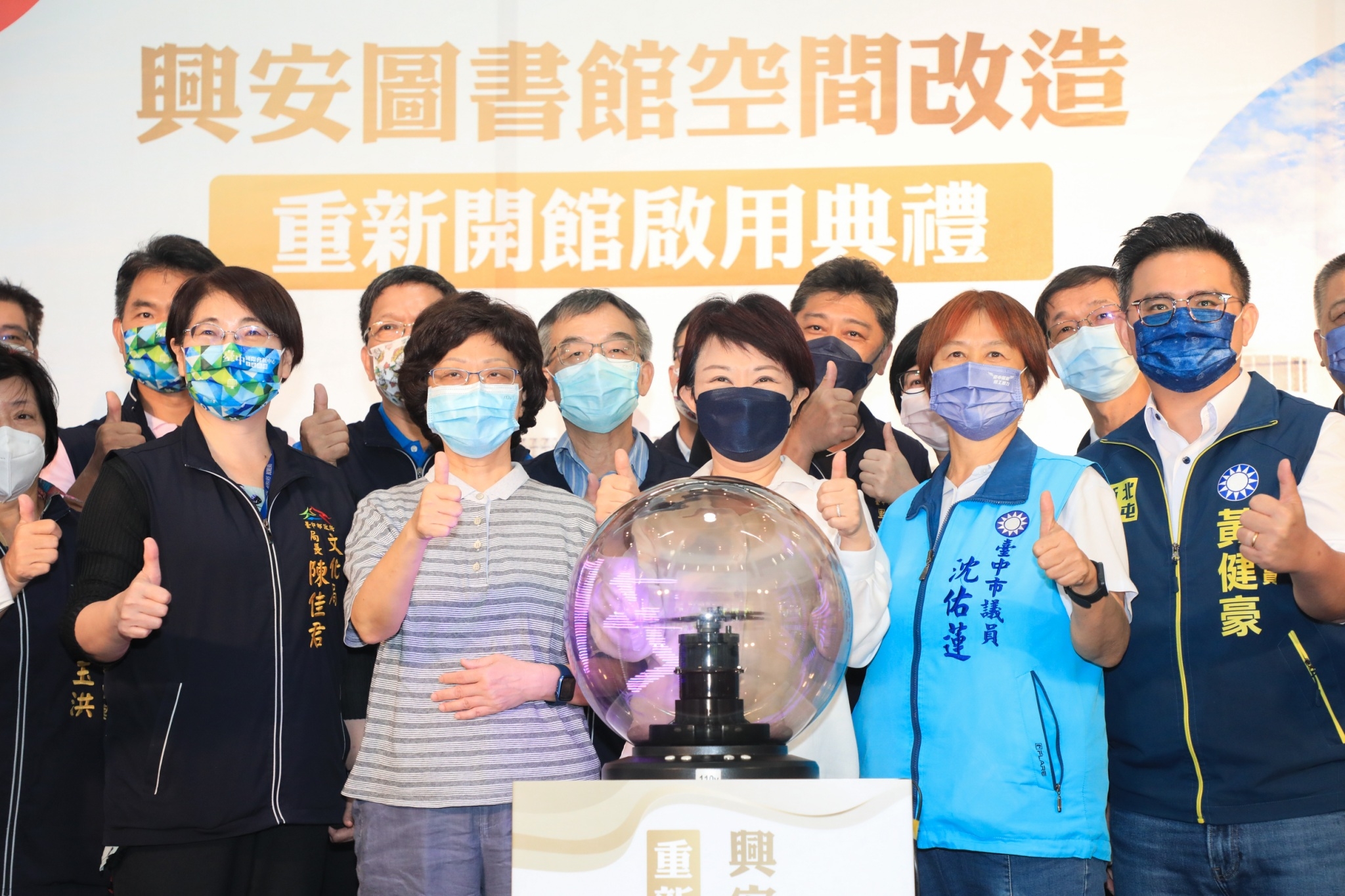 台中市首座由民眾共同參與命名的「興安圖書館」(原北屯兒童分館),在市府編列4,184萬元及財團法人台中市私立文英基金會挹注1,270萬元下,歷經1年3個月進行建物耐震補強、外牆立面改新風貌、廁所與空調設備更新汰換等工程,煥然一新。市長盧秀燕今(7)日出席重新開館啟用典禮時表示,希望嶄新的興安圖書館提供市民安全、友善、無障礙、全齡化的閱讀空間。