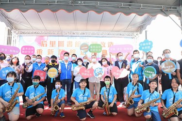 台中市后里圖書館建館逾30年,原有空間不敷使用、設備老舊,在市府與在地企業公私協力下,投入750萬元重新改建,歷經5個月工期,結合在地文化產業薩克斯風樂器,一座以「音樂」為主題的圖書館重新開館啟用。「深化城市競爭力!」市長盧秀燕今(13)日出席啟用典禮指出,連續二年台中獲整體閱讀力表現績優城市,市府已陸續啟用多個分齡分眾的圖書館,透過加強城市閱讀力,讓市民愛上閱讀。
