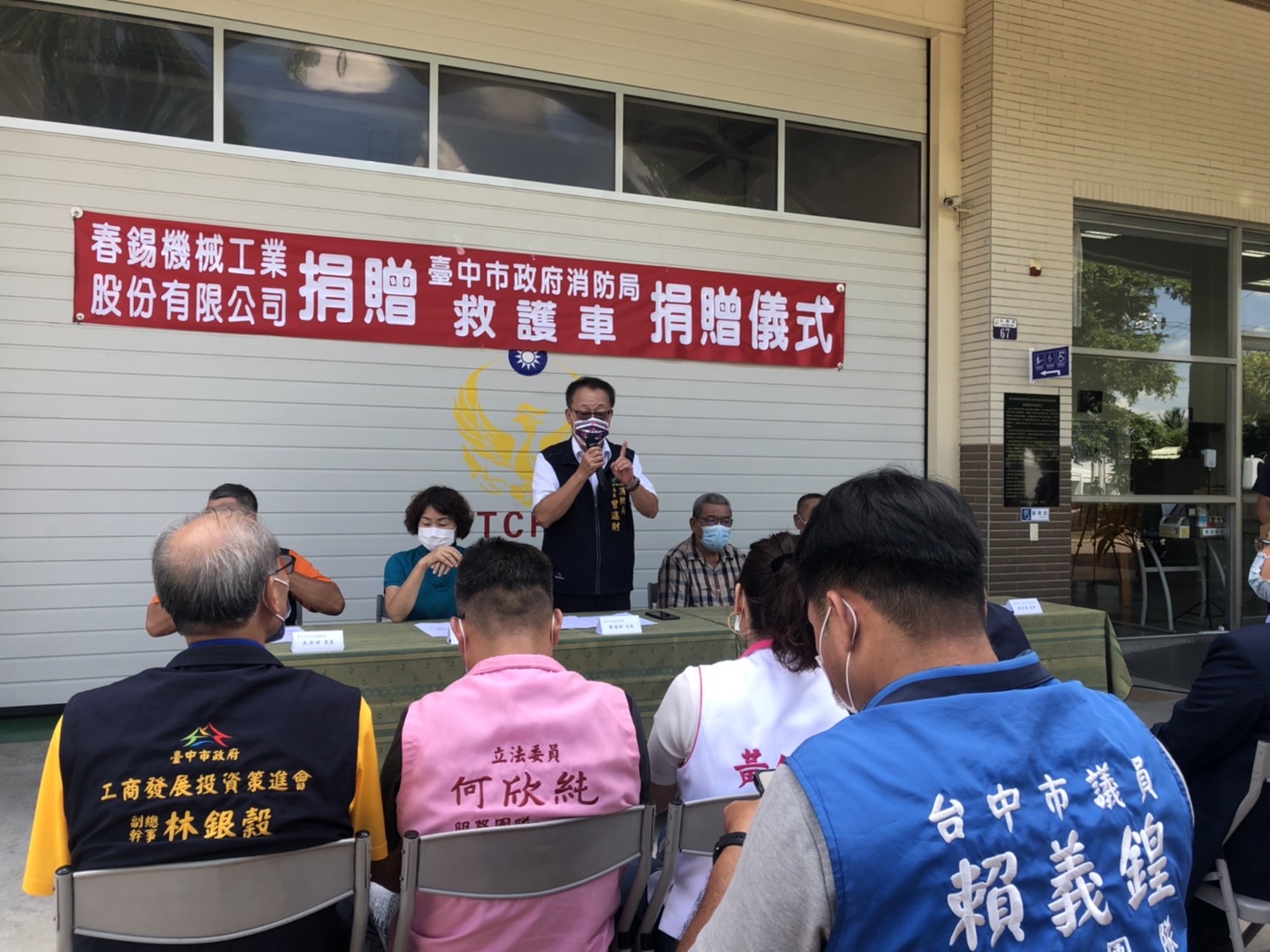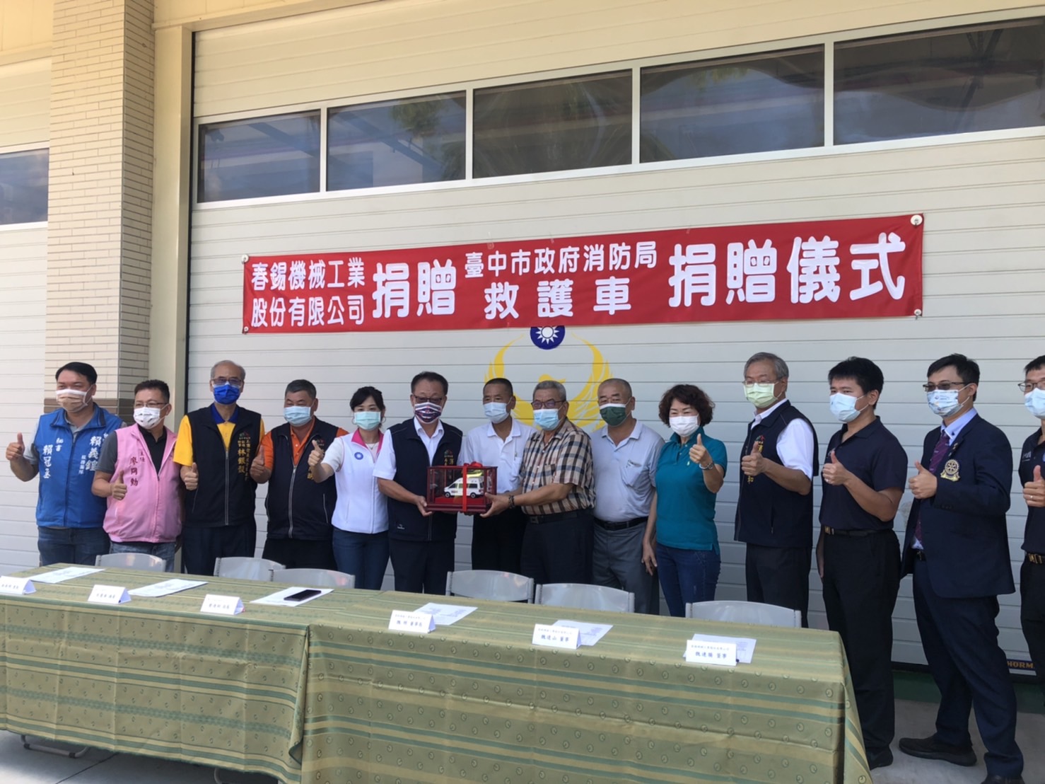 春錫機械工業股份有限公司由在地里長吳燕明及市議員李麗華引介,熱心捐贈救護車給消防局第三救災救護大隊車籠埔分隊。消防局長曾進財今(21)日出席捐贈儀式,感謝春錫機械企業回饋社會、造福鄉里,盼藉完善的車輛與裝備提升救護品質。