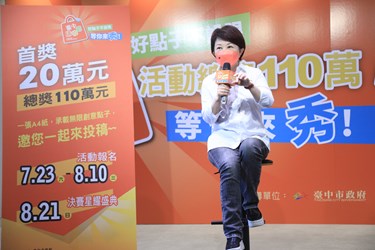 台中購物節今年邁向第四年,首度邀請全國民眾為購物節秀出好點子,成為全台最接地氣的購物節。市長盧秀燕今(23)日出席宣傳記者會,宣布「台中購物節 等你來秀」創意提案徵選活動正式起跑,總獎金110萬元,即日起至810日受理網路報名,徵件提案前10名每名將獲得10萬元台中購物金,首獎再加碼10萬元,你的創意讓台中購物節幫你買單。