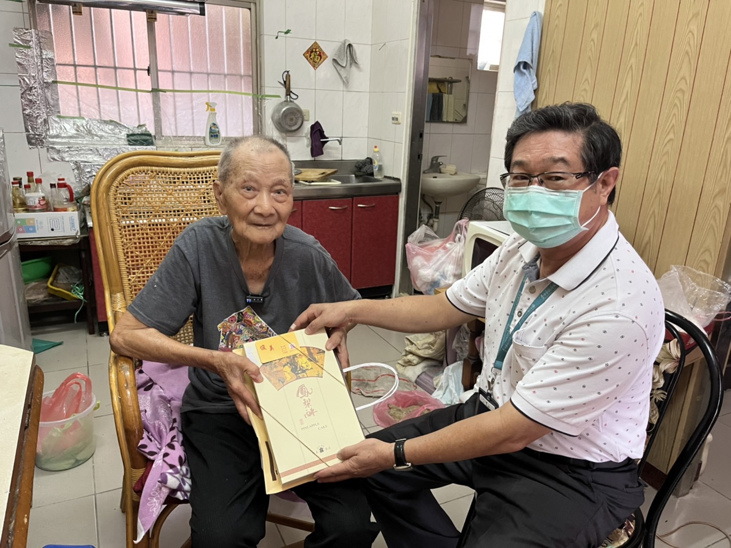 文化局指出,市府與黃先生簽訂的認養維護契約已於今年7月31日到期,黃永阜先生搬遷彩虹村後,文化局與春社派出所持續前往關懷探視,確保彩虹爺爺黃永阜先生安全。「文化局工作人員對我很好,常買雞精、營養品、餅乾等關心我!」黃先生表示,市府持續的探望及幫忙,讓他非常感動,並在紙上記錄下心情,也表達對市府的感謝。