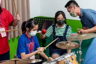 教育局表示,全國視障生音樂夏令營去年因疫情停辦一年,今年全國視障生無限愛音樂夏令營由台中市立啟明學校、台中北區扶輪社共同主辦。營隊中除介紹與帶領學員賞析經典拉丁風格的樂曲My Little Suede Shoes外,並藉由不同樂器分組教學,讓學員學習運用樂器共同演奏。