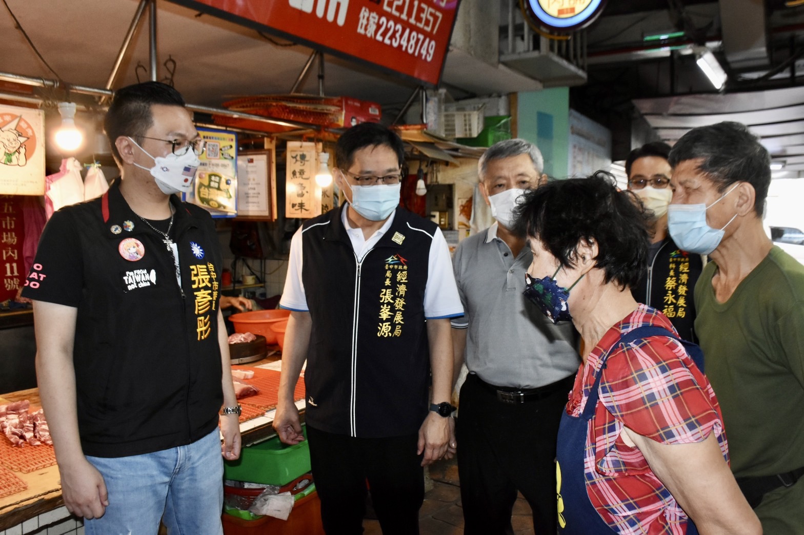 台中市第五市場經歷疫情,始終保持競爭力,只因老顧客難忘這充滿人情味及溫暖的市場,隨著疫情趨緩,人潮也逐漸回流。經發局昨(2)日由經發局長張峯源與市議員張彥彤視察市場,了解市場攤商營業情形,並聽取市場自治會對於軟硬體的改善建議。張局長表示,市府會針對自治會所提建議,儘快研議改善方案,給市民更優質便利的市場消費場域。
