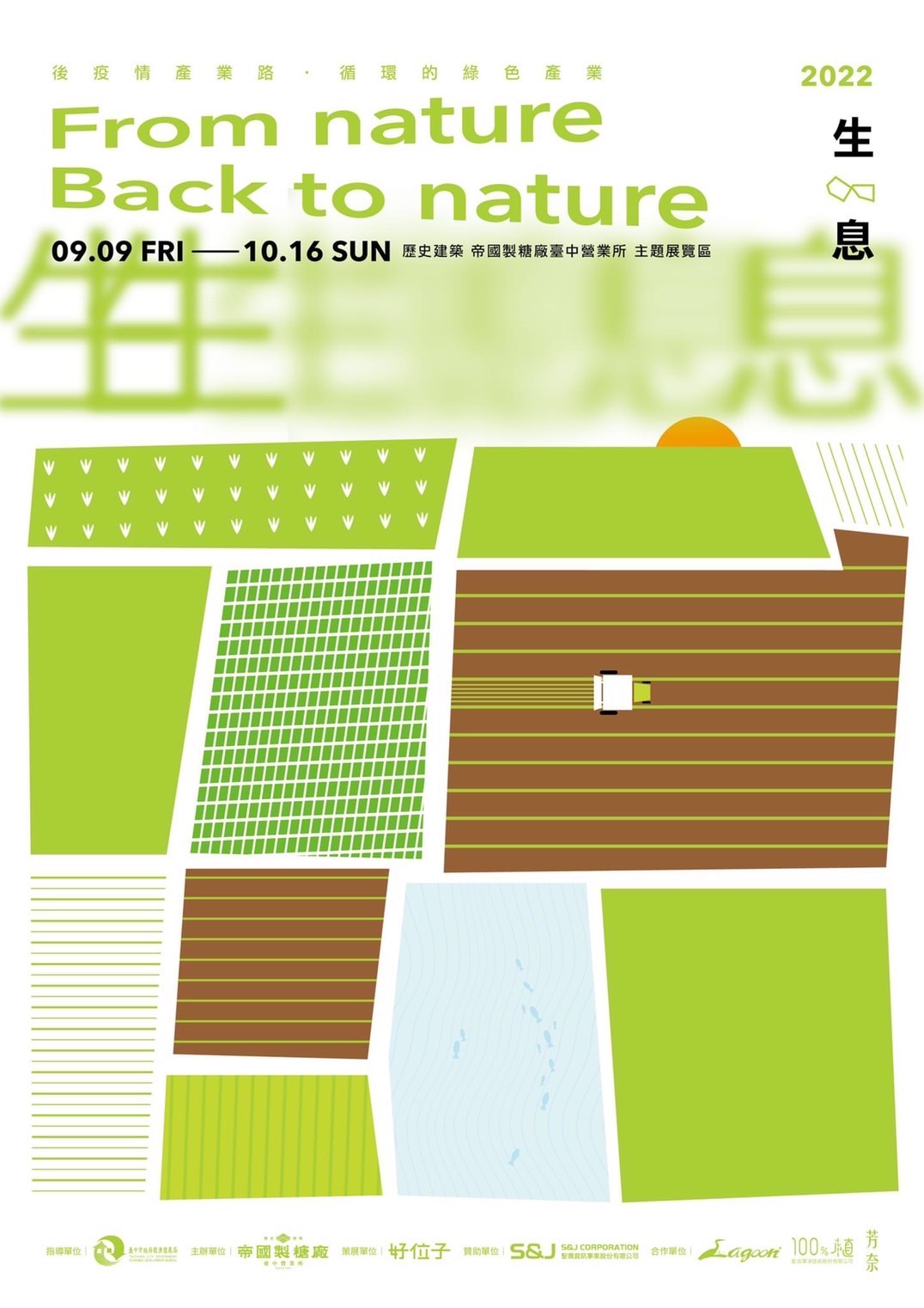 台中東區著名景點、新興打卡聖地的帝國糖廠舉行「生;息─綠色循環產業展」,展期自即日起至1016日止,搭配「後疫情產業路」年度策展主軸,與產業界合作,闡述後疫情時代生活樣態,並聚焦於綠色循環產業,探討在疫情之後如何持續永續發展,讓產業友善生產、環境友善生息、民眾友善生活。