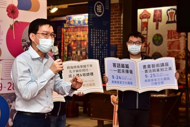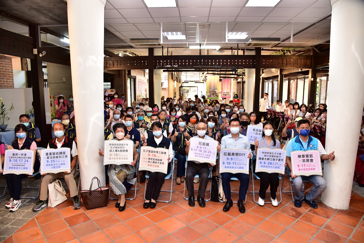 台中市客家事務委員會今(9)日於東勢客家文化園區舉辦「時哉時哉穿越千年孔子與你同行-論語客語多藝展」開展儀式,替為期20天的紀念孔子誕辰暨教師節系列活動拉開序幕,活動地點包含東勢客家文化園區、台中客家故事館、台中客家樂活園區及東勢文昌廟,將祭典、書畫、茶道、音樂、舞蹈及花藝等傳統文化與客家現代元素結合,推動傳統美學藝術、中華文化與客家文化。