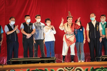 明華園戲劇總團今(17)晚在烏日明道中學,由無敵小生孫翠鳳領銜主演,帶來經典愛情大戲《界牌關傳說》戶外公演,市長盧秀燕出席與民同樂,她表示,很開心看到現場高朋滿座,眾多烏日鄉親攜老扶幼、一同來重溫廟口看戲的熱鬧場景。